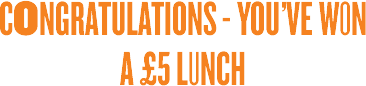 Well done! You’ve just won a lunch worth £5. To claim your prize simply hit the button below.